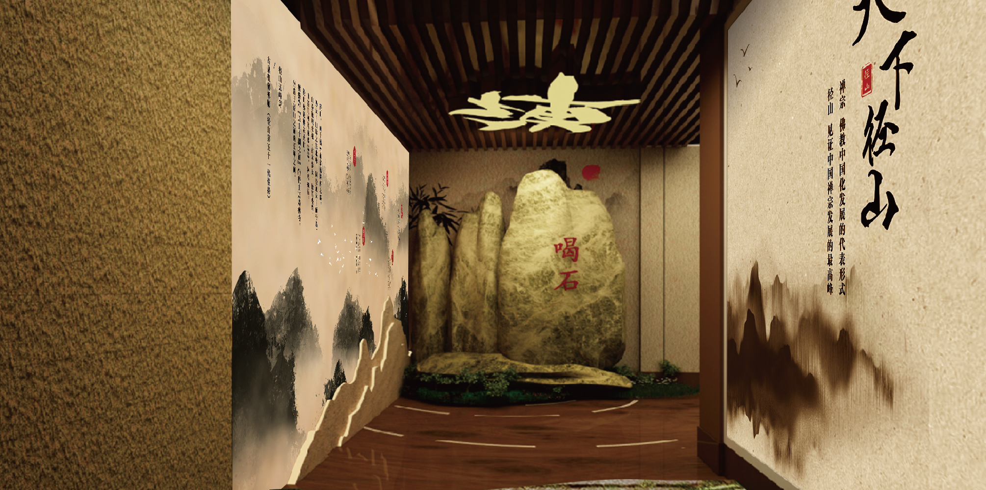 進口是徑山寺著名的徑山古道和喝石的復刻,歷代高僧大德都曾走過古道,也在喝石下參禪。是對歷史的一個還原,讓觀者有一個代入感,得到心靈的洗禮。